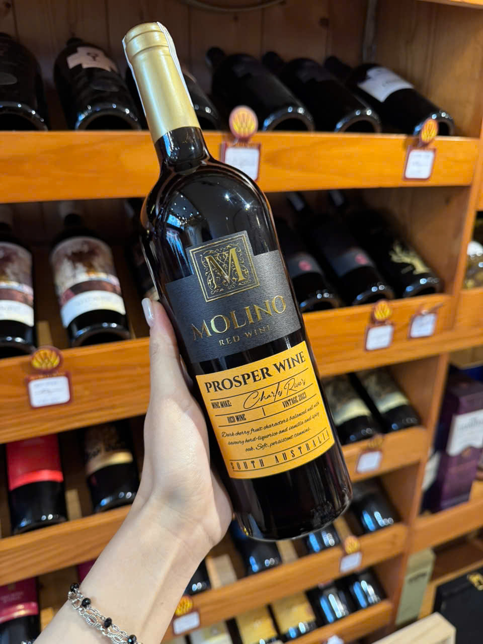 Rượu vang Molino Prosper Wine sở hữu hương thơm quyến rũ của trái cây chín mọng như mận đen, anh đào, kết hợp tinh tế cùng vani, chocolate và gia vị nhẹ từ quá trình ủ.